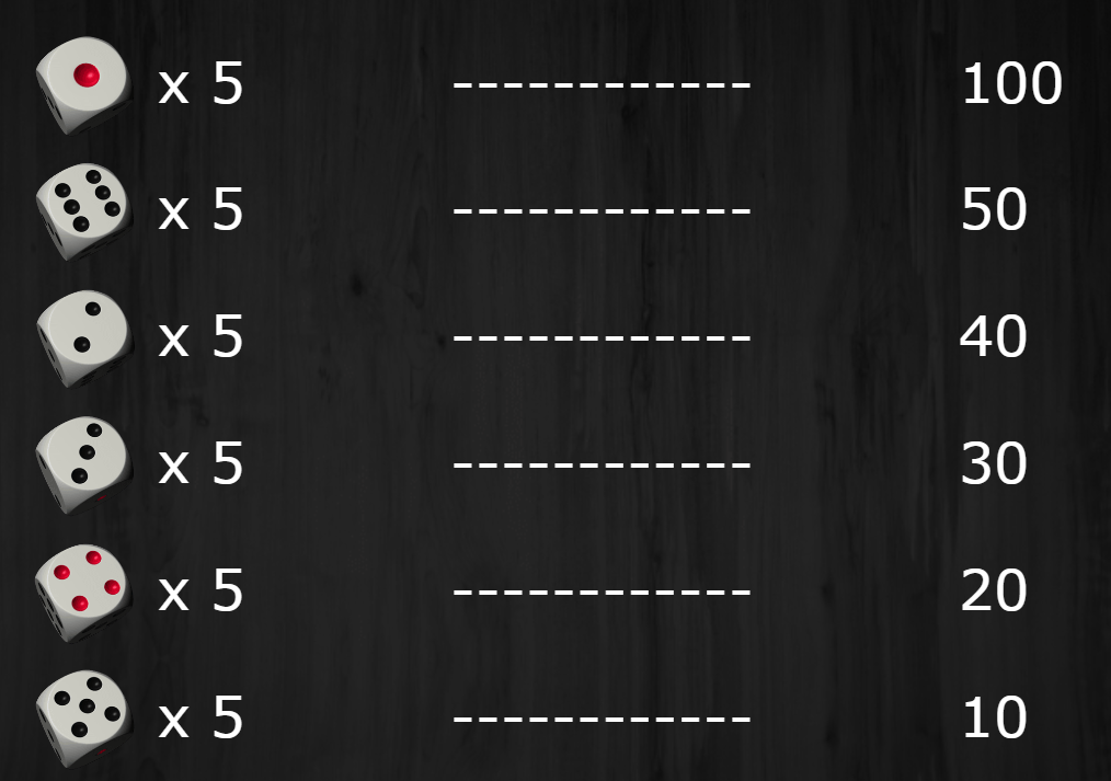 五個紅點骰子:最高賠付100倍,這是遊戲中的最佳收益組合,玩家若能夠鎖定紅點骰子,將有極高的回報潛力。