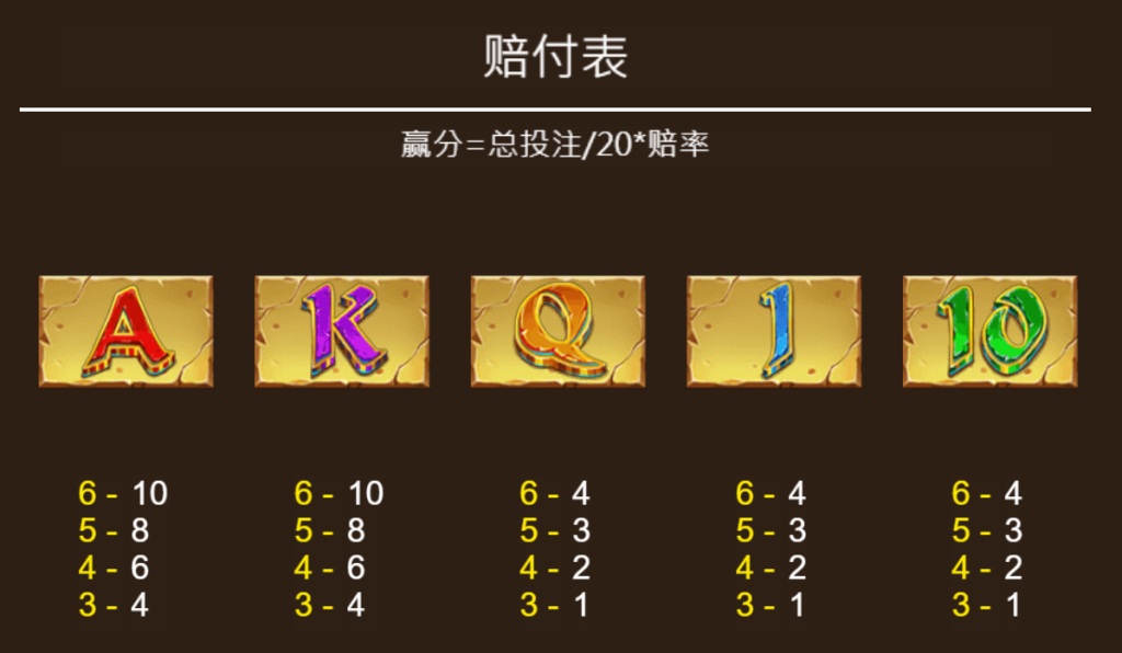 我認為《埃及王朝》的賠付圖表充分體現了ZG電子對玩家需求的深刻理解。從高額賠付的法老符號到基礎回報的撲克牌符號,每一個符號的設計都經過精心考量,既增強了遊戲的趣味性,也提升了玩家的遊戲體驗。此外,這些圖標的視覺設計也充滿了濃厚的埃及文化元素,讓人不禁沉浸於古文明的神秘之中。