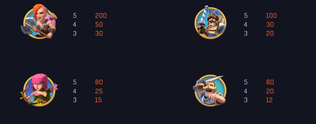 在高賠付符號中,女性戰士以強大的存在感脫穎而出,最多可提供200倍的獎金,她的英勇形象與高回報完美結合,無疑是玩家追求的目標之一。而騎士符號則提供最高100倍的獎勵,象徵著穩定且誘人的回報。我覺得,這樣的角色設計不僅符合遊戲的戰爭主題,也讓玩家對遊戲過程充滿期待。