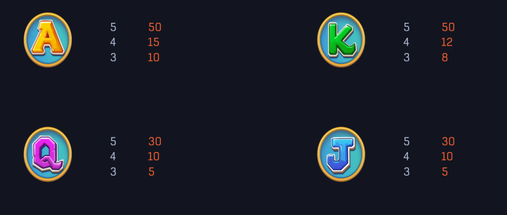 基礎符號如A、K、Q、J則代表了遊戲的穩定性,最高賠付為50倍或30倍,適合長時間遊戲的玩家。我覺得,這些符號雖然回報不高,但卻是構建整體遊戲體驗的基石。玩家通過這些符號的累積獎勵,能夠穩步推進,為觸發高額獎勵符號創造更多機會。
