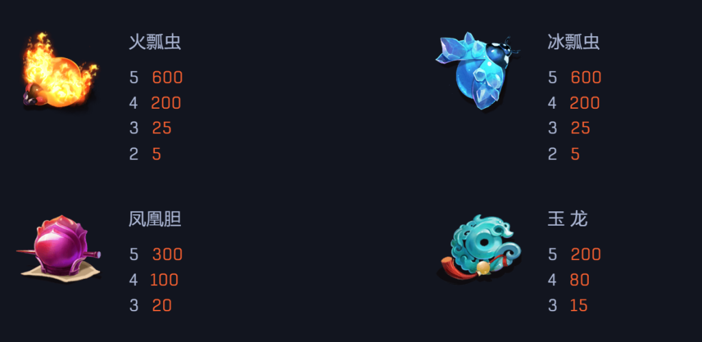 其次是鳳凰膽,其最高賠付為300倍,以及充滿東方元素的玉龍符號,最高賠付為200倍。這些符號不僅象徵著遊戲中的寶藏與神秘,也為玩家提供了中等回報的獎勵。我認為這樣的設計平衡了高風險與穩定收益的需求,讓玩家的遊戲體驗更加豐富。