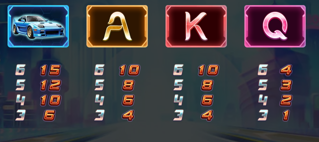 低價值符號如字母Q、J和數字10,賠付範圍為1至4倍,雖然回報較低,但它們的出現頻率高,可以幫助玩家保持遊戲的節奏與穩定性。我覺得這種設計對於新手玩家非常友好,能夠逐步熟悉遊戲並享受賽車文化的魅力。