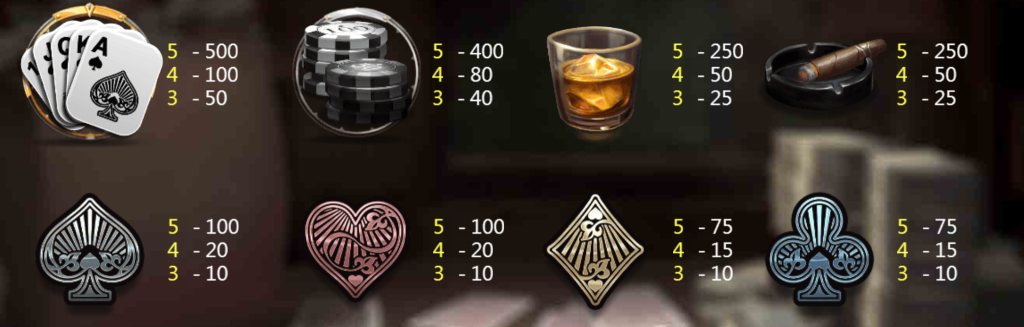 遊戲的賠付設計讓人感受到大場面賭博的刺激,最高賠付的撲克牌圖案象徵著賭徒夢寐以求的勝利,而籌碼與威士忌則代表了賭場的奢華享受。當玩家在轉軸中看到熟悉的紅心、梅花、方塊時,不禁會聯想到紙牌賽的緊張氣氛,而出現五張相同圖案時,更會帶來極具吸引力的高額獎勵。除了基本賠付外,這款遊戲還特別設計了額外的獎勵機制,例如特殊的Wild符號能夠替代其他圖案,提高玩家的連線機會,讓每一局都充滿變數與期待。