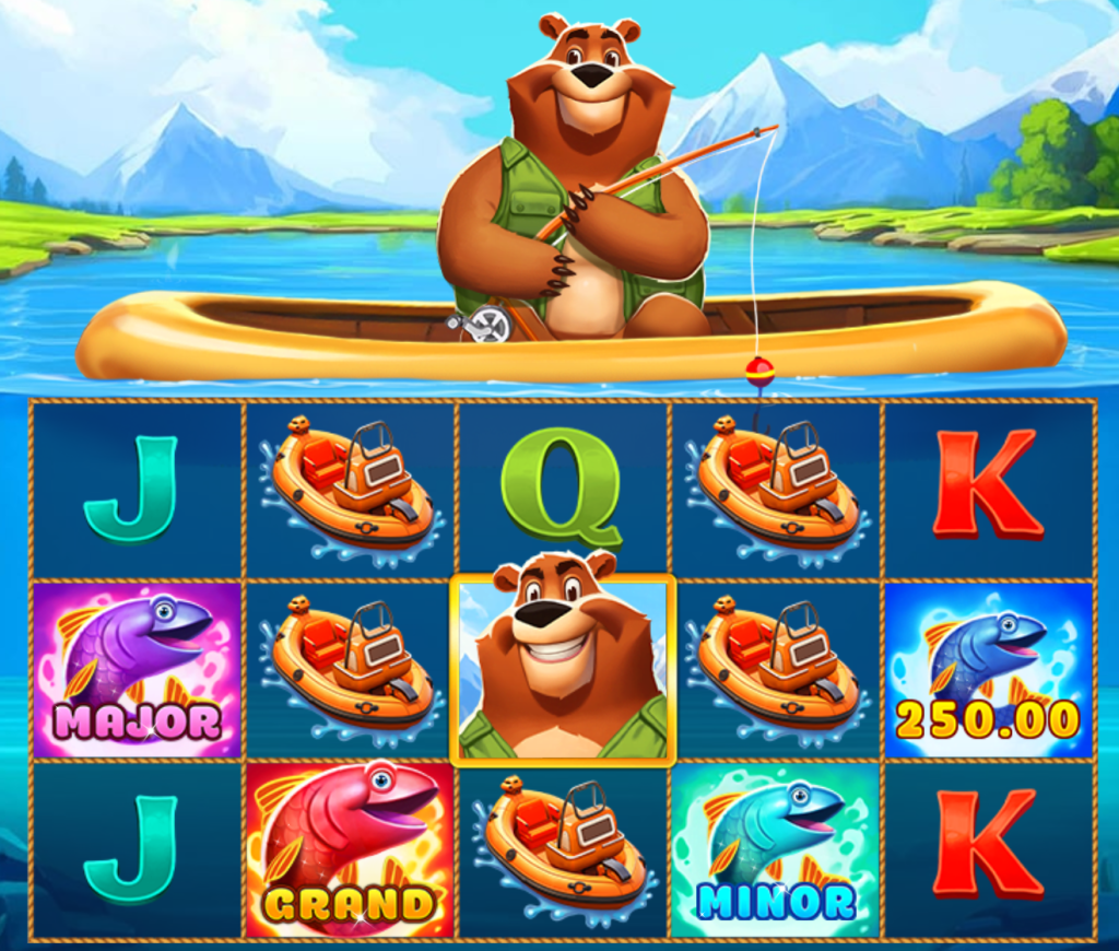BNG電子-棕熊釣客遊戲介紹:讓你在湖泊中釣起50000倍彩金!