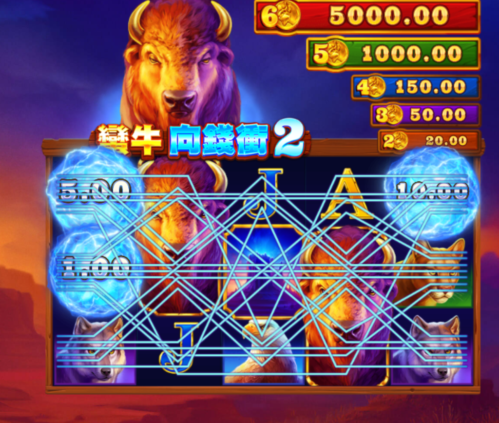 BNG電子-蠻牛向錢衝2-集鴻運遊戲介紹:與蠻牛一同奔向5000倍大獎!