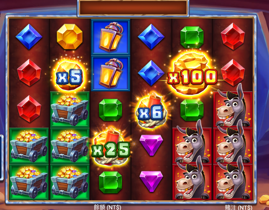 遊戲採用連擊消除機制,當玩家成功連線時,消除的符號將會自動掉落新符號,形成連續得分的機會,這種設計讓遊戲節奏更快,每一次旋轉都充滿期待。我認為最刺激的部分是當礦車滿盤時,那種黃金傾瀉而出的視覺效果,真的讓人彷彿置身於一場真正的淘金熱潮,而當畫面上出現100倍金幣時,更是瞬間點燃所有玩家的淘金夢想。