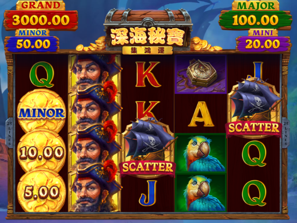 《深海秘寶-集鴻運》不僅擁有華麗的視覺效果與震撼音效,還具備創新的獎勵機制,確保玩家能夠在這場深海尋寶之旅中獲得極致的遊戲體驗。立即啟航,跟隨海盜的腳步,探索無盡的財富與神秘寶藏!