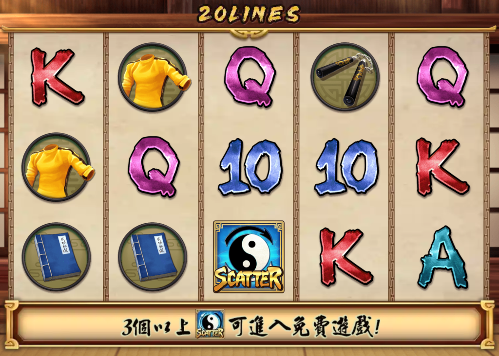 SPLUS電子推出的《猛龍傳說》是一款融合經典武術文化與現代遊戲機制的電子老虎機,讓玩家仿佛置身於武林世界,親身感受高手對決的激烈氛圍。遊戲畫面充滿濃厚的東方武學風格,從黃金戰衣、雙節棍、武學秘笈到太極八卦符號,每個元素都象徵著功夫大師的傳承,營造出緊張刺激的戰鬥場景。