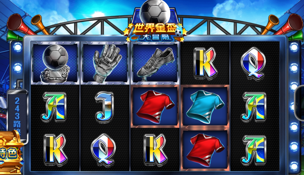 《世界金杯》是RK5電子打造的足球主題老虎機,帶領玩家進入熱血沸騰的足球賽場。遊戲畫面融合了足球元素,如獎盃、球衣、手套等,搭配炫目的燈光特效與動感音效,營造出彷彿置身世界盃賽事的氛圍。