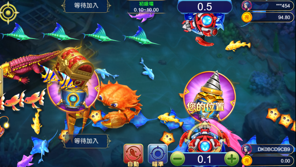 遊戲操作上支援自動與鎖定兩種模式,適合不同類型的玩家,無論是輕鬆觀賞還是手動追擊都很順手。每位玩家還能自由調整炮台押分,從0.1到高倍進階,捕魚策略更加自由靈活。