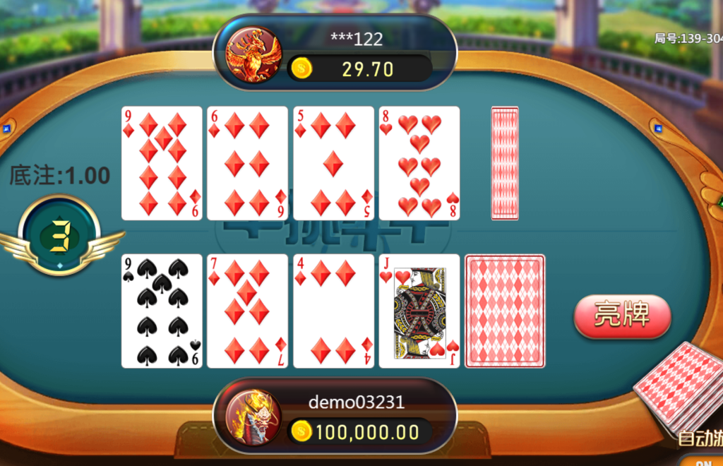 我認為《單挑牛牛》的魅力,就在於節奏簡潔俐落又充滿博弈張力。玩家獲得五張牌後立即進行組牌拼牛,像畫面中滿是方塊、黑桃與紅心的牌型對比,讓每局對戰都呈現出獨特的對抗風格。而那「亮牌」按鈕一按的瞬間,真的會讓人心跳加速。