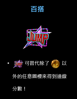 這款遊戲的「百搭符號」就是那個閃爍著星芒的「JUMP」圖示。它的功能很簡單,就是可以替代除了金色鏡球以外的所有圖案,幫助你完成連線組合,甚至可能讓你從兩圖連線提升成三圖,實質拉高中獎機會。