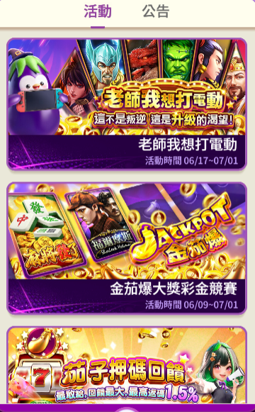 遊戲茄子娛樂城近期主打三個活動,包括「老師我想打電動」、「金茄爆大獎彩金競賽」以及「茄子押碼回饋」,這三個活動其實各自代表不同的經營方向:第一個偏向娛樂化與主題式的參與任務;第二個則著重於賽事排名與實質獎勵;第三個則是針對活躍玩家設計的點數回饋機制。這種分類其實正反映出平台想要從「遊戲供應」進一步進化為「活動驅動」的意圖。
