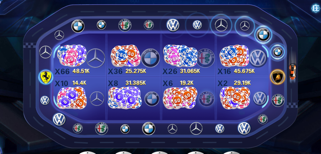 在玩法上,《奔馳寶馬2》採用類似賽車競賽的押注系統,每個車標代表不同倍率與押注區塊,例如賓士倍率高達X66,BMW與Volkswagen等也各自擁有不同倍數與籌碼總額分布,營造出充滿賭場刺激的節奏感。不僅比拼押注策略,更考驗玩家對車標走勢與趨勢的觀察力。