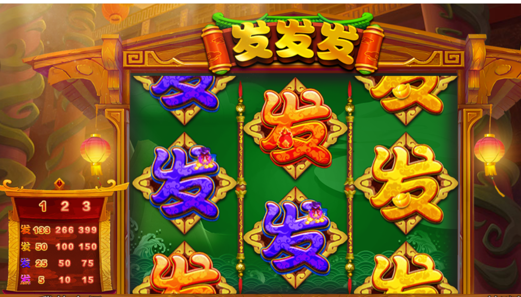 《FG電子-發發發2》是一款充滿東方喜氣氛圍的經典老虎機遊戲,以大紅燈籠與宮殿牌樓作為背景,傳遞濃厚的財運象徵。畫面上三種不同顏色的「發」字圖騰依序排列,營造出極具視覺衝擊的節慶感,讓人有如置身春節街頭。