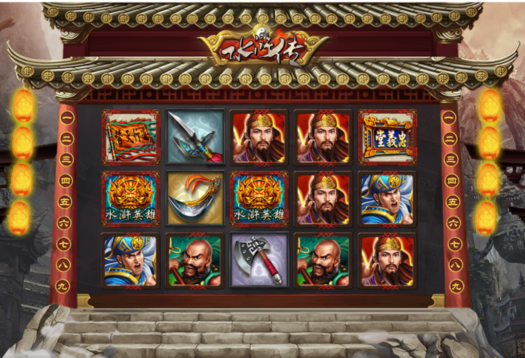 《FG電子-街機水滸傳》以經典中國名著《水滸傳》為題材,打造出一款極具英雄氣息的街機風格拉霸遊戲。畫面設計採用宮殿屋簷結構,搭配石階與紅燈籠,讓整體視覺氣勢磅礡,彷彿置身梁山泊義軍之中。
