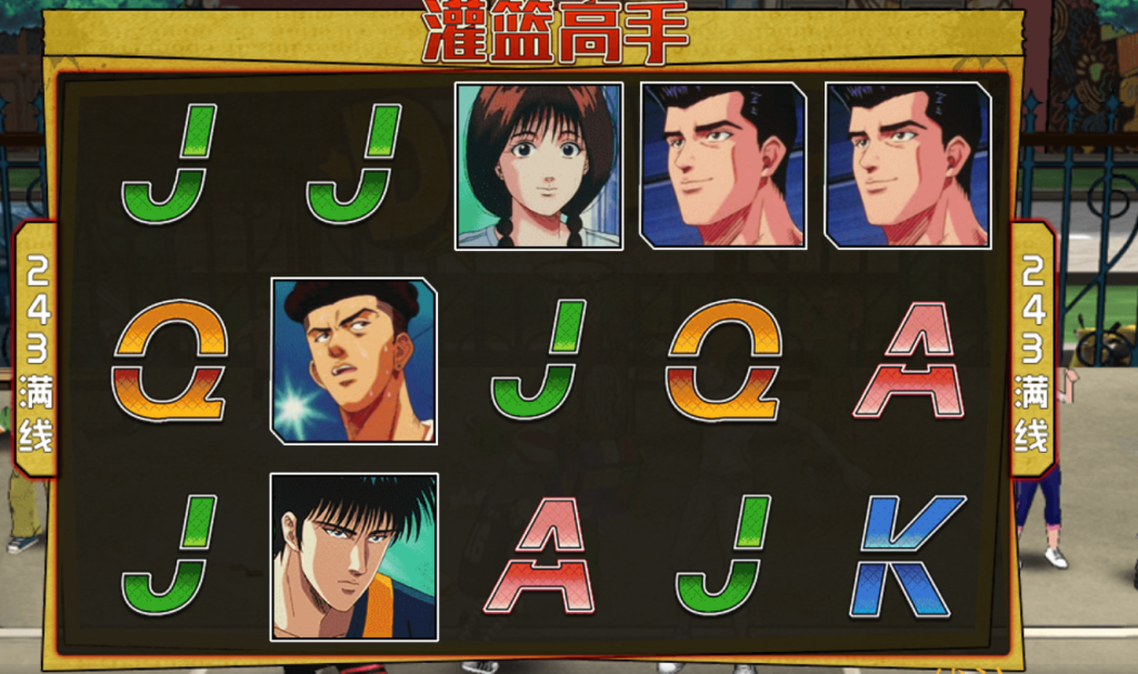 遊戲整體採用的是243線的方式,不限制傳統的左到右排列規則,所以只要有同樣的圖示落在任意三個相鄰輪軸上就能得分,這大幅提升了整體中獎率。對於偏好節奏快、連線多的玩家來說,我認為這款《灌籃高手》絕對不輸給現在熱門的連線型老虎機。