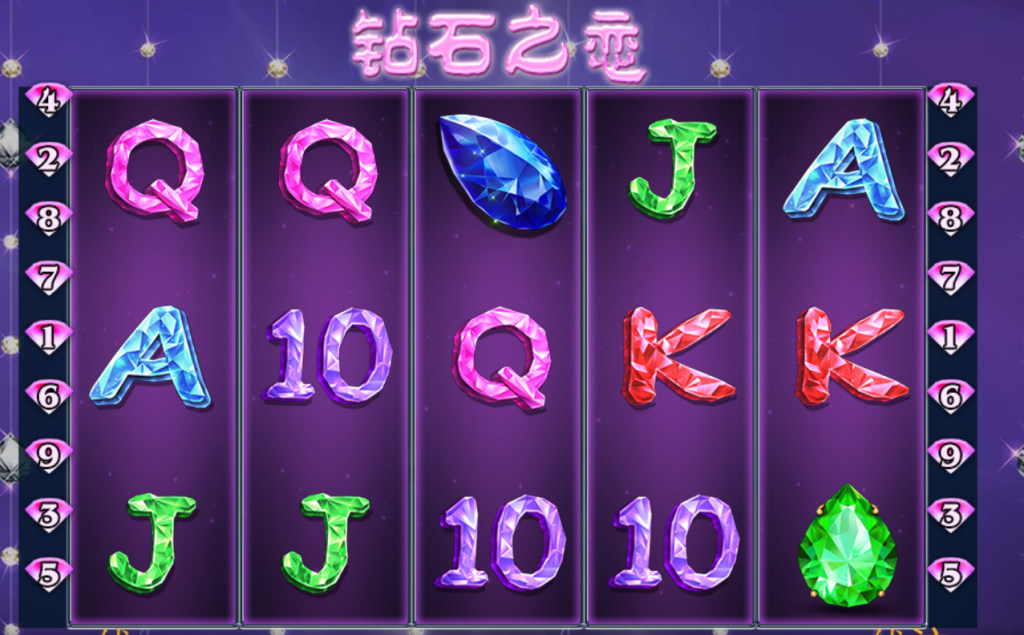 《鑽石之戀》由FG電子打造,是一款以璀璨寶石為主題的視覺系老虎機,整體畫風閃亮奪目,每個轉輪上的圖案宛如經過精雕細琢的寶石精品,無論是粉紅Q、紅色K、綠J或藍A,每一顆都閃閃發光,極具視覺吸引力。