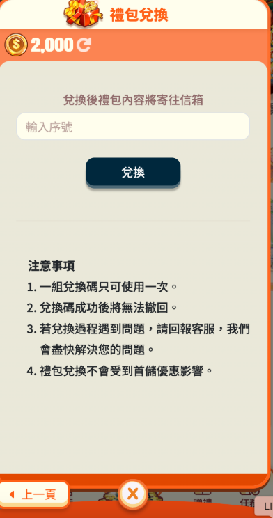 Step 2:點擊「禮包兌換」進入輸入頁面