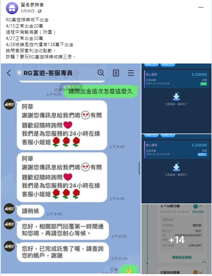 富遊娛樂城不出金│FB網友揭露詐騙疑雲,玩家請三思!