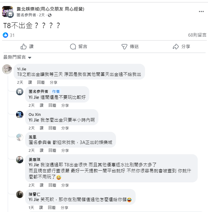 T8娛樂城不出金風波:網友怒揭平台真相!