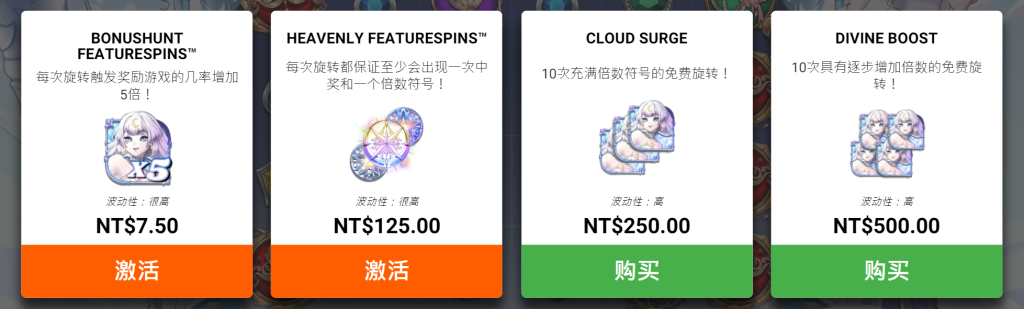 與Cloud Surge模式相比,Divine Boost模式則更加神秘和具有挑戰性,當玩家在基礎遊戲中同時出現4個FS散布符號時,這個模式就會被激活,並同樣提供10次免費旋轉的獎勵。