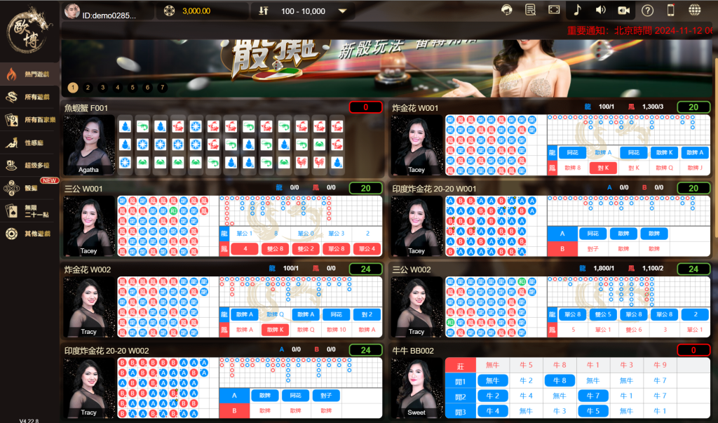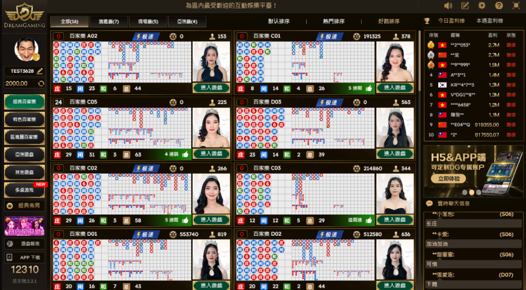 我覺得DG夢幻娛樂城的免費試玩最明顯的優勢在於其多樣化的桌面配置。官網中展示了多個百家樂桌面,每個桌面都配有不同的荷官,玩家可以根據自己的喜好選擇適合的桌面。這種設計不僅增添了遊戲的選擇性,還讓玩家能夠體驗到不同荷官帶來的獨特氛圍。對於初學者來說,這樣的多樣性可以讓他們在不同的環境中熟悉百家樂的遊戲規則,而資深玩家則可以通過這些桌面練習不同的策略。
