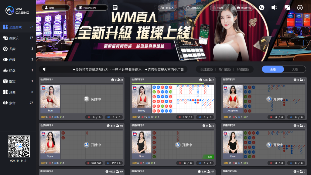 WM娛樂城提供了一個專業的百家樂免費試玩平台,設計精美且功能豐富,為不同類型的玩家創造了出色的博弈體驗。每個遊戲桌都有真人荷官進行直播發牌,且畫面質量相當高清。我覺得這樣的設計提升了遊戲的沉浸感,讓玩家彷彿置身於真實賭場中。