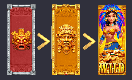 假設你的轉盤上有兩個金框符號包圍的「紫色面具」,而它們恰好在連線的中間位置,那麼這些符號很有可能在下一輪旋轉中變成百搭符號,直接將整條連線組合補滿,讓你拿下高額獎金。