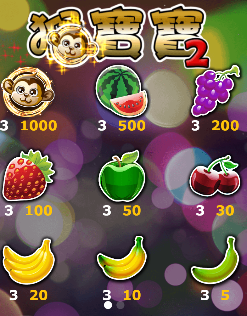 猴寶寶2是AMEBA電子旗下廣受玩家喜愛的水果主題遊戲,其賠付路線清晰簡單,特別適合初學者和輕鬆娛樂的玩家。這款遊戲的賠付設計以三個相同圖案組成賠付條件,圖案與倍數設計巧妙,既能提供豐富的獎勵機會,也讓玩家有機會挑戰更高額的回報。