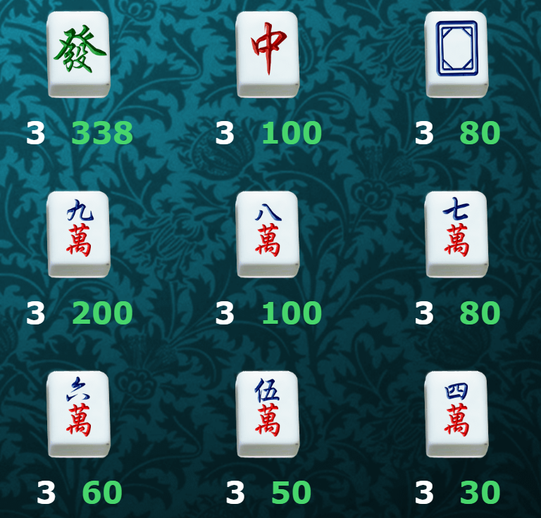 從賠付圖案來看,遊戲中的高賠付符號主要是發、中和九萬,當這些符號組成連線時,最高可獲得338倍的驚人回報。而其他符號如八萬和七”,也分別有著100倍和80倍的回報。我認為這樣的設計很好地平衡了玩家追求大獎與保持穩定回報之間的需求。