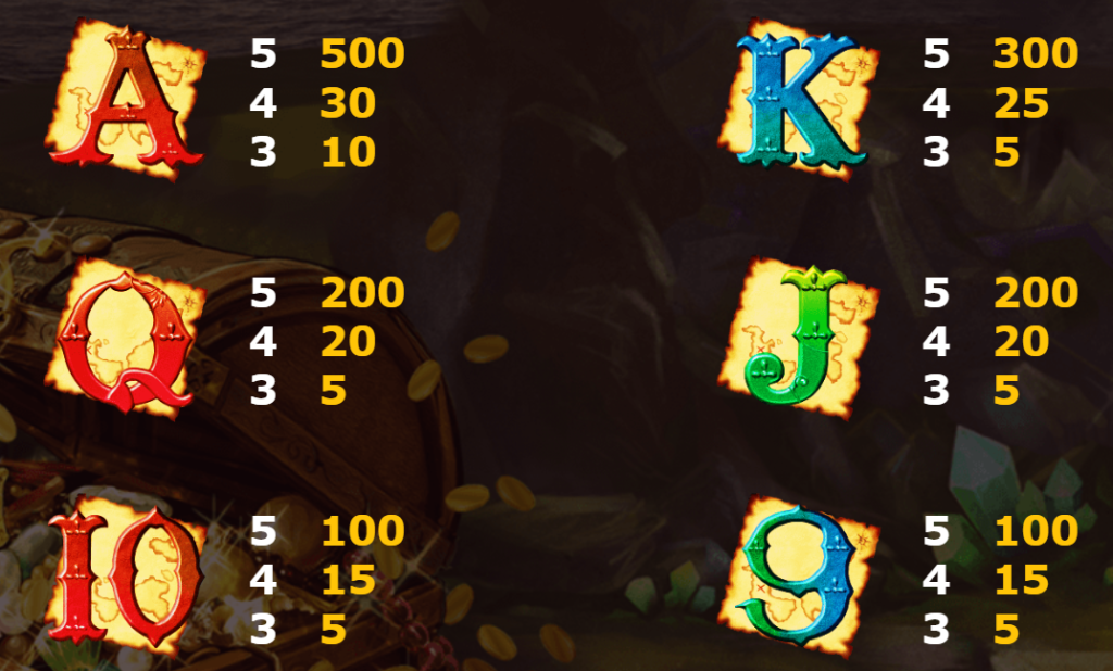 - A、K、Q、J、10、9:這些基礎符號負責填充遊戲畫面,賠付範圍從5倍到500倍不等。我認為這些符號為遊戲提供了平衡的賠付機制,能夠讓玩家保持遊戲的持續性。
