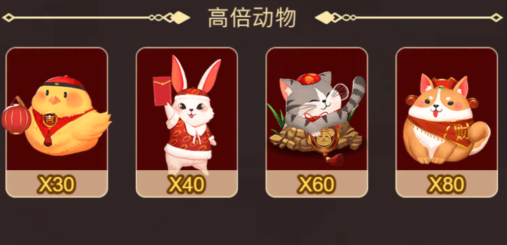 倍率從30倍的燈籠雞到80倍的招財狗不等。這些角色不僅外觀更加精美,還蘊含著更高的回報可能性。尤其是當高倍動物出現時,玩家需要快速瞄準並出手,這種刺激感讓人非常投入。我認為這部分是遊戲的一大亮點,能夠滿足追求高風險高回報玩家的需求。
