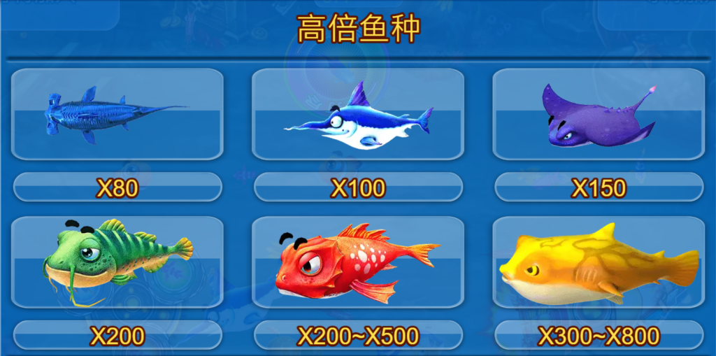 當玩家進入高倍魚種的範圍時,遊戲的緊張感瞬間升級。從X80的大型深海魚到X800的金色巨魚,每一種高倍魚都象徵著巨大的回報。我覺得這部分特別適合那些喜歡冒險的玩家,因為一旦成功捕獲這些魚群,收益將是巨大的。尤其是X200~X500的紅色魚種,其豐厚的獎勵讓人心跳加速。
