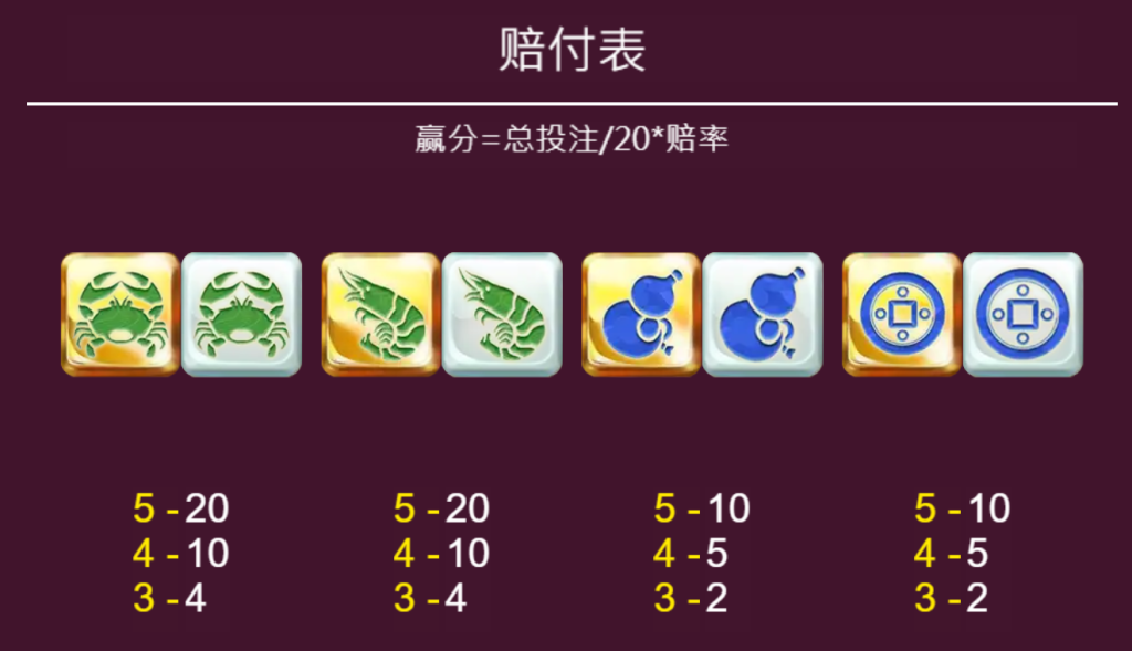 從整體設計來看我認為《超級魚蝦蟹》的賠付機制是一種平衡風險與回報的表現方式,無論是追求大獎的玩家,還是喜歡細水長流的小額累積玩家,都能在這款遊戲中找到屬於自己的樂趣。再加上簡單直觀的「總投注/20*賠率」公式,玩家能迅速掌握自己的潛在收益。