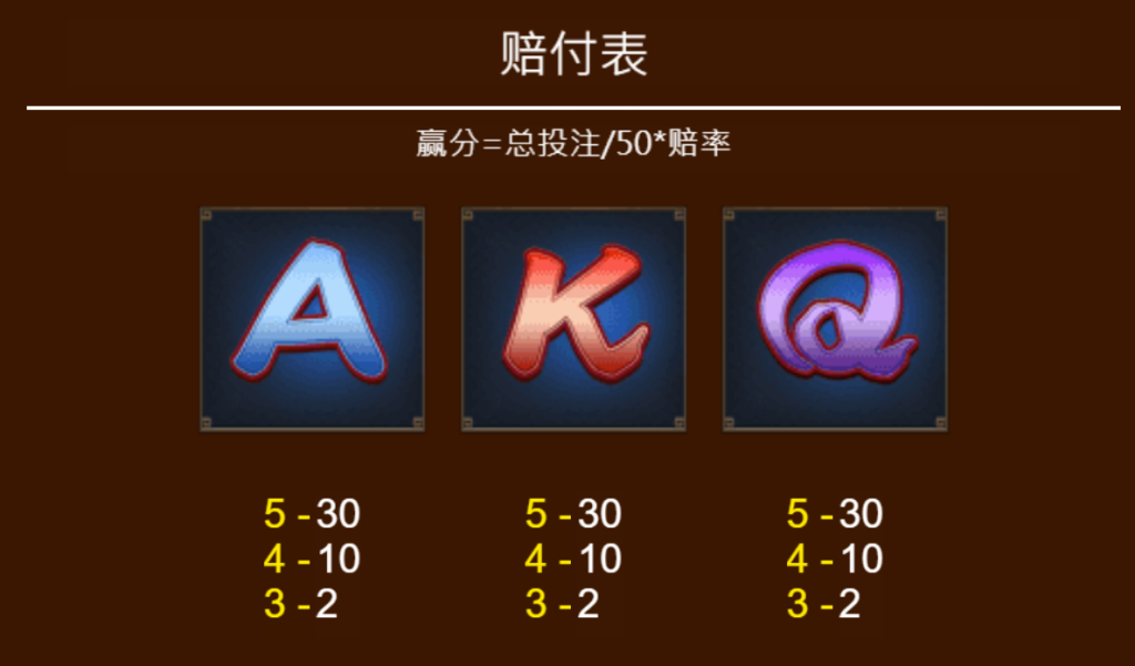 低價值符號為A、K、Q這三種經典字母設計,儘管賠付較低,但出現頻率極高,有助於玩家在連線中積累穩定的回報。當這些符號達成五連線時,玩家可獲得30倍的投注回報。我認為這些符號的存在不僅降低了遊戲的風險,也為追求穩定收益的玩家提供了更多選擇。