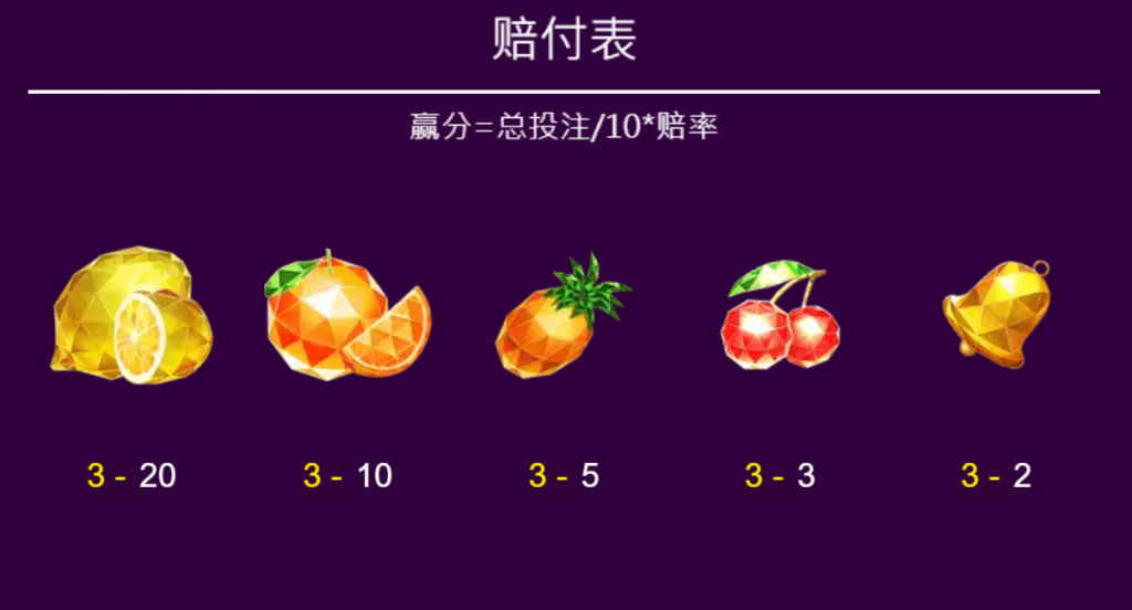 - 橙子:提供了10倍總投注的賠付,搭配其他水果,讓人期待連線中的可能性。
