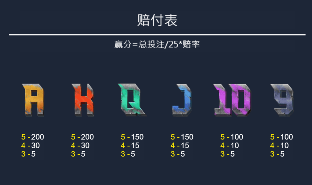 此外,遊戲還包含字母與數字符號作為低價值圖標。雖然賠付較低,但出現頻率相對較高,提供了穩定的贏分機會。我認為這樣的設置不僅降低了玩家的挫敗感,也為整體遊戲體驗增添了更多層次感。字母圖標如A和K的五連賠付為200倍,而Q和J的五連則稍低,但仍有150倍的回報,能有效補充玩家的贏分體驗。