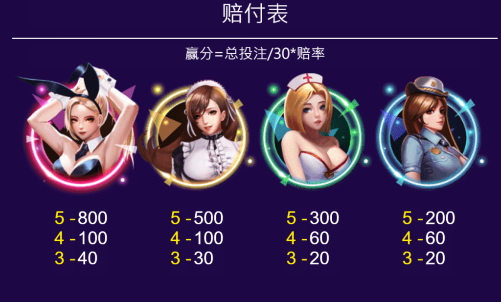 《更多妹子》遊戲以其繽紛炫目的畫面和豐富多樣的角色贏得了玩家們的喜愛。從賠付表來看,每位角色都有其特定的賠率,而這些賠率直接影響玩家的獲勝機會。這款遊戲的核心吸引力在於角色設計與獎勵的完美結合。