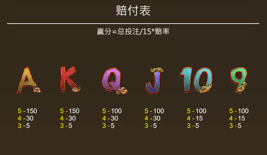 - A與K:集滿5個可獲得150倍賠率。