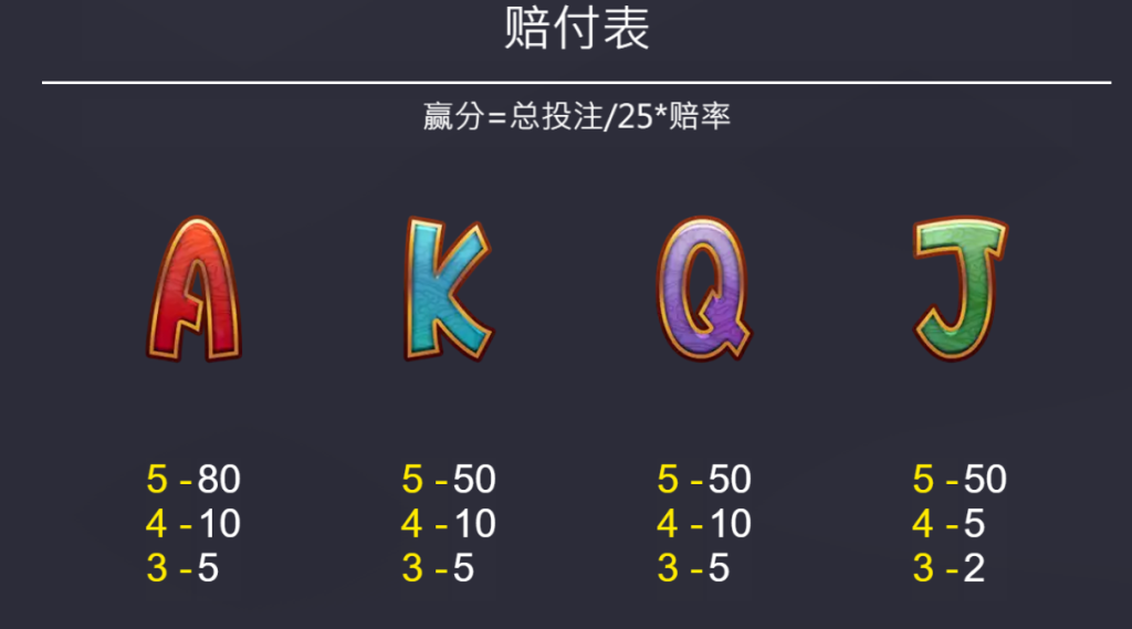 遊戲還包含了一些低價值的符號,如A、K、Q、J等撲克牌字母。我認為這些符號的設計是為了填補轉軸,提供基本的賠付,同時不會過度影響遊戲的平衡性。