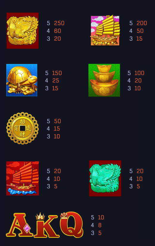 - 紅帆船與青玉雕飾:最高賠付為20倍,雖然賠付較低,但出現頻率高,幫助玩家保持遊戲的連貫性。