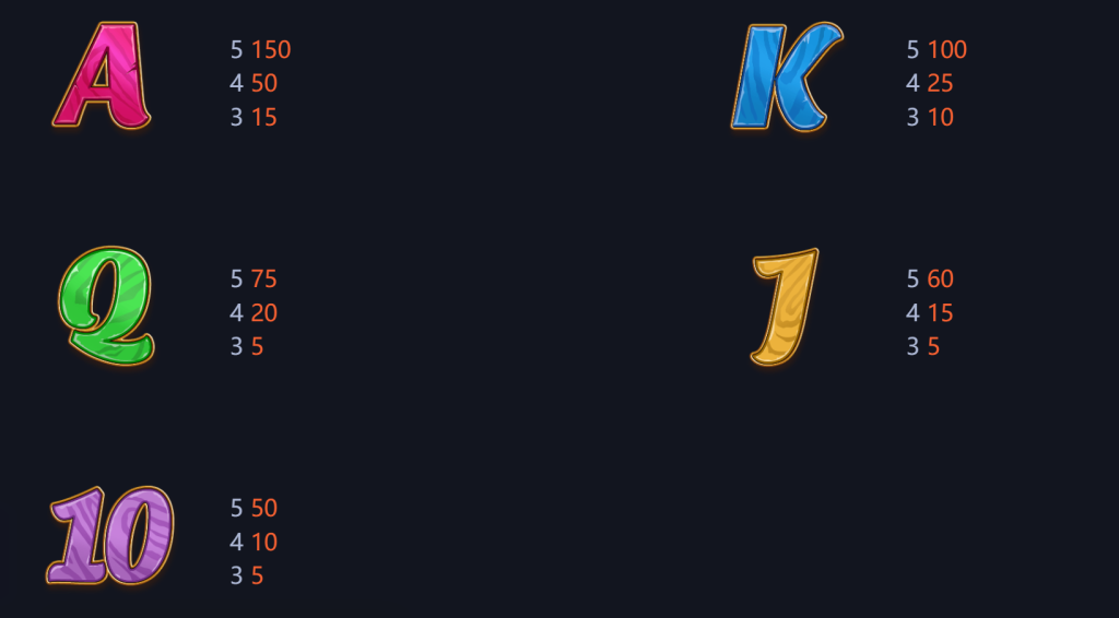 此外,字母符號(如A、K、Q等)則提供了更低的回報,但它們的高出現頻率確保了每一次旋轉都能讓玩家感受到參與感。例如,五個A符號提供150倍賠付,Q符號則提供75倍的回報,這些符號的設計讓遊戲充滿了驚喜與期待。