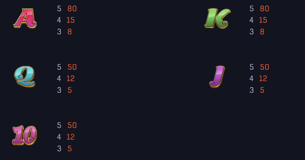 結界獸雖然只提供最高150的賠付,但作為頻率較高的符號,依然具有其意義。我認為,這樣的設計可以平衡玩家的中低階段獎勵,維持遊戲的節奏感和趣味性。同時,A、K等經典符號則作為低賠付元素,以5至80的範圍提供穩定的回報。我覺得這部分對於長時間遊玩的玩家特別重要,因為它能持續讓玩家感覺到有進展。