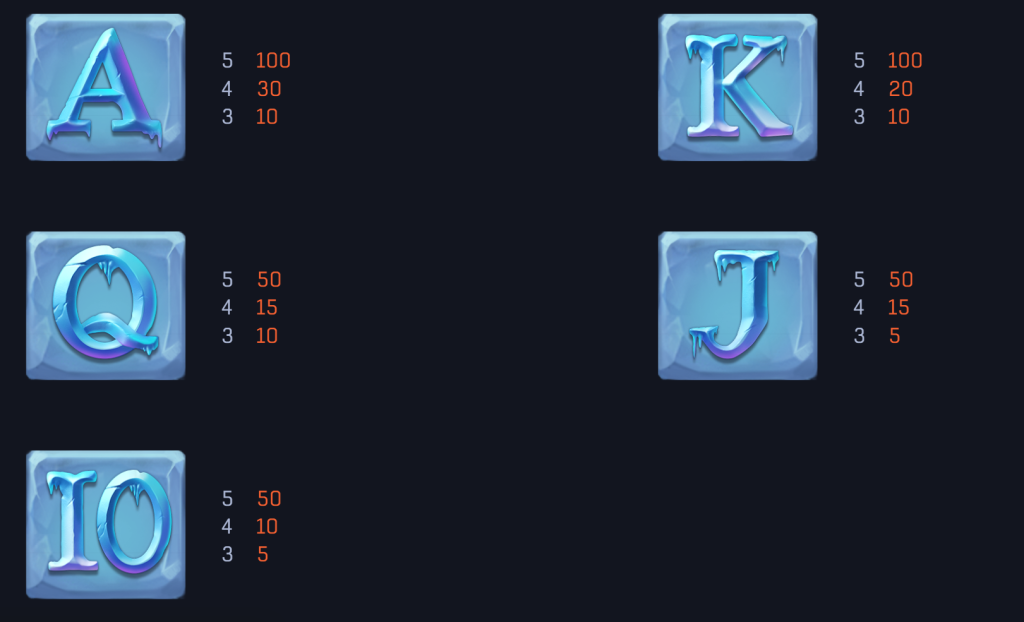 而恐龍與劍齒松鼠則屬於中等回報的符號,最高分別可獲得150倍的獎金。我認為這些符號的設計不僅為遊戲增添了趣味性,也讓玩家在中等投注時有穩定的回報機會。此外,遊戲中還有冰塊字母符號,如A、K、Q等,它們雖然回報較低,但頻繁出現,能幫助玩家保持遊戲流暢,提升整體體驗。