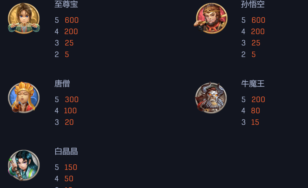 首先要提到的是遊戲中的高賠付符號——至尊寶與孫悟空,這兩個角色代表了遊戲中的最高回報。當玩家湊齊5個符號時,可獲得高達600倍的回報。我認為,這種高賠付設計不僅象徵了角色的重要性,還激勵玩家不斷挑戰,期望迎來一次次的財富爆發。