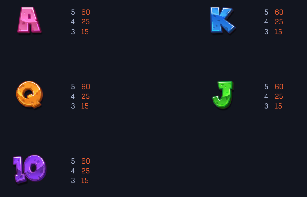 字母(A、K、Q、J)與數字(10)符號雖然回報較低,但它們的高出現頻率讓遊戲過程更加流暢。最高回報60倍的設計,讓玩家在追求大獎的同時,也能感受到基礎回報帶來的小驚喜。
