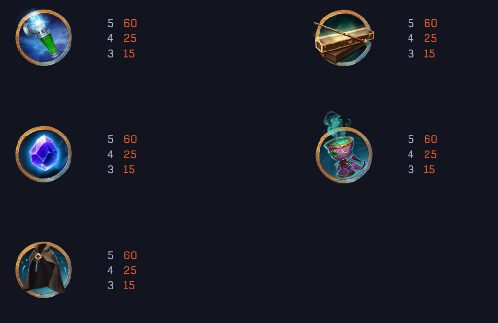 低賠付符號涵蓋了多種魔法元素,包括魔杖、魔法藥水、隱形斗篷等,其最高賠付為60倍。這些符號雖然回報較低,但在整體遊戲中提供了穩定的中獎機會。我認為,這些元素的加入,不僅豐富了遊戲畫面,也讓玩家更能融入魔法世界的氛圍。