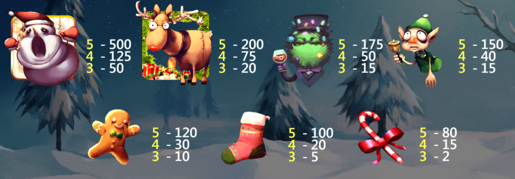 中等價值符號如聖誕樹與精靈,分別提供175倍與150倍的最高賠付。這些符號的設計不僅有趣,還融合了聖誕節的傳統元素。我認為,這部分設計巧妙地平衡了遊戲的節奏,讓玩家能夠享受到更多的中獎機會,同時不失追逐高額獎金的期待。
