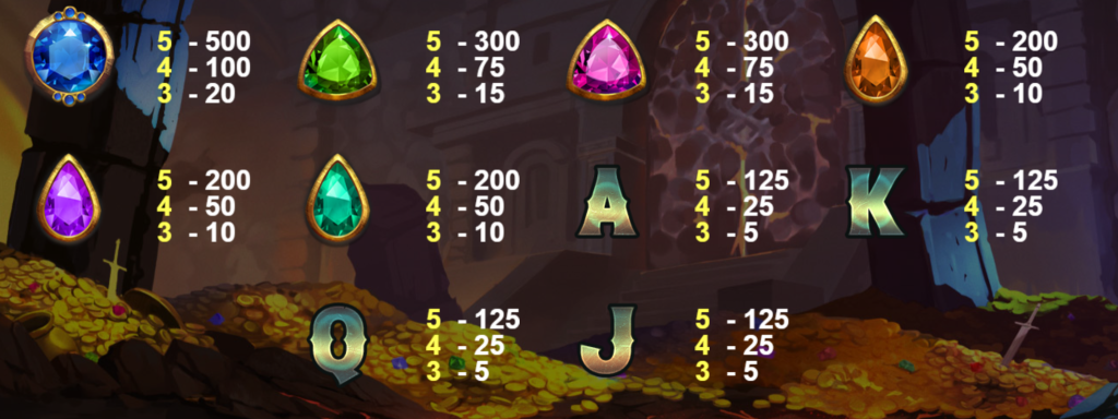 而紫色與青綠色寶石則提供最多200倍的回報,4個50倍,3個10倍,雖然獎金相對較低,但其出現頻率較高,能為玩家提供穩定的勝利機會。